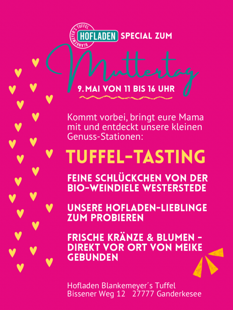 Am SAMSTAG den 9. Mai von 11–16 Uhr laden wir euch ein, gemeinsam mit eurer Mama (oder einfach euren Lieblingsmenschen 😉) einen genussvollen Tag bei uns zu verbringen ☀️